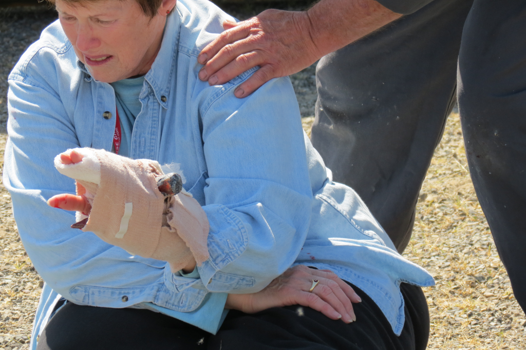 yellow rhino victim’s mock injuries after receiving first aid 3